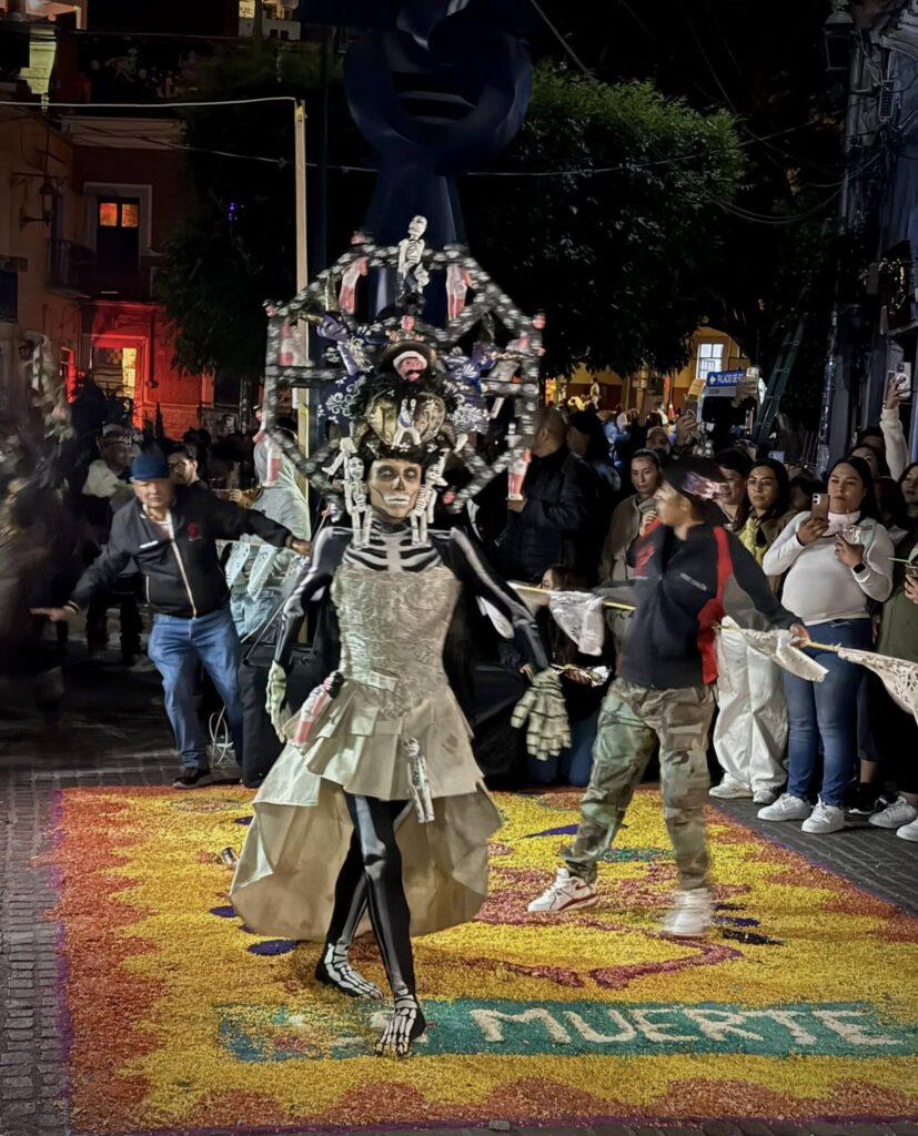 Guanajuato, Gto. Con la presencia de miles de personas, la muerte recorrió las calles de Guanajuato capital y, por primera vez, llegó al altar al interior de la Basílica Colegiata de Nuestra Señora de Guanajuato.