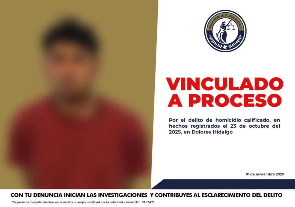 Dolores Hidalgo, Gto. La Fiscalía General del Estado de Guanajuato obtuvo vinculación a proceso penal en contra de JOSÉ RAFAEL “N”, acusado de haber privado de la vida a dos hombres durante un lamentable hecho ocurrido en días pasados, que conmocionó profundamente a la comunidad de Garabatillo, en este municipio.
