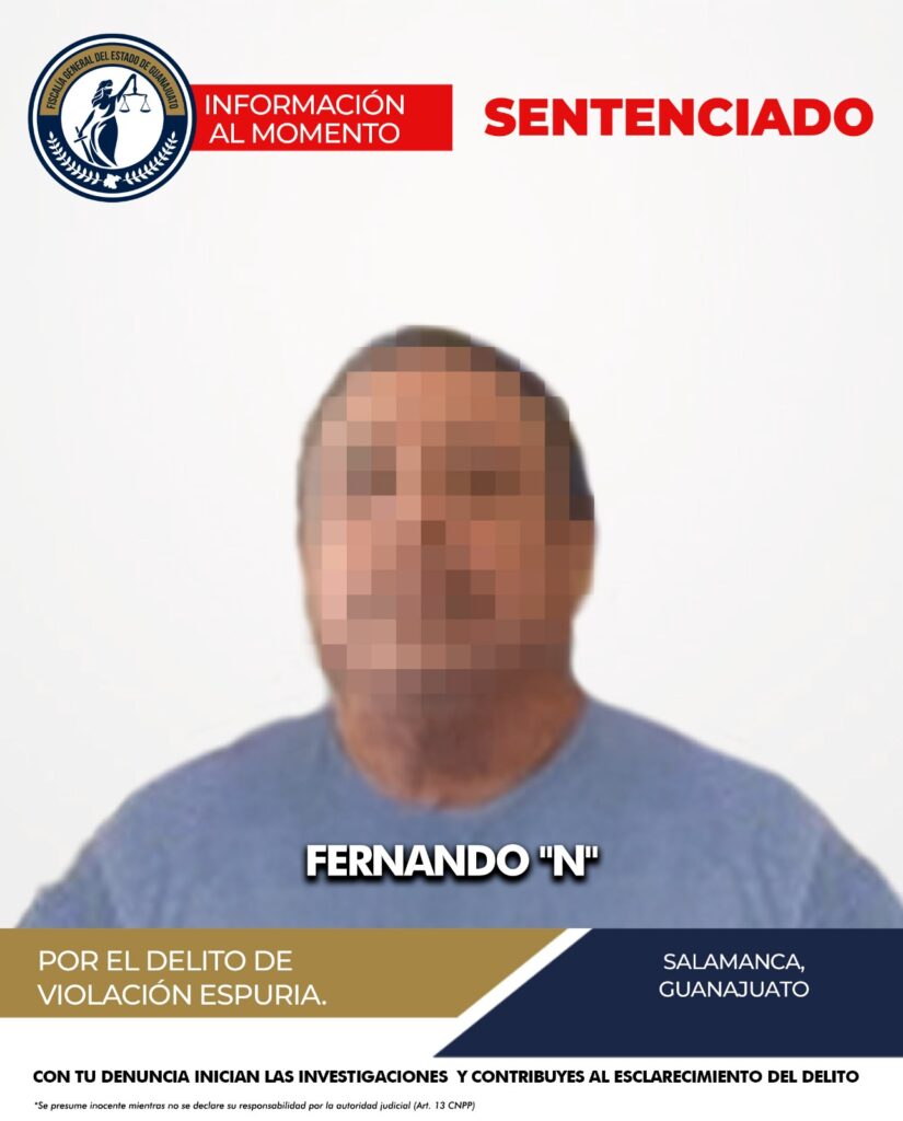 Salamanca, Gto. En una audiencia de procedimiento abreviado celebrada recientemente, FERNANDO “N” fue sentenciado a 17 años y 8 meses de prisión por el delito de violación espuria cometido en agravio de dos víctimas, en hechos registrados en el municipio de Salamanca.