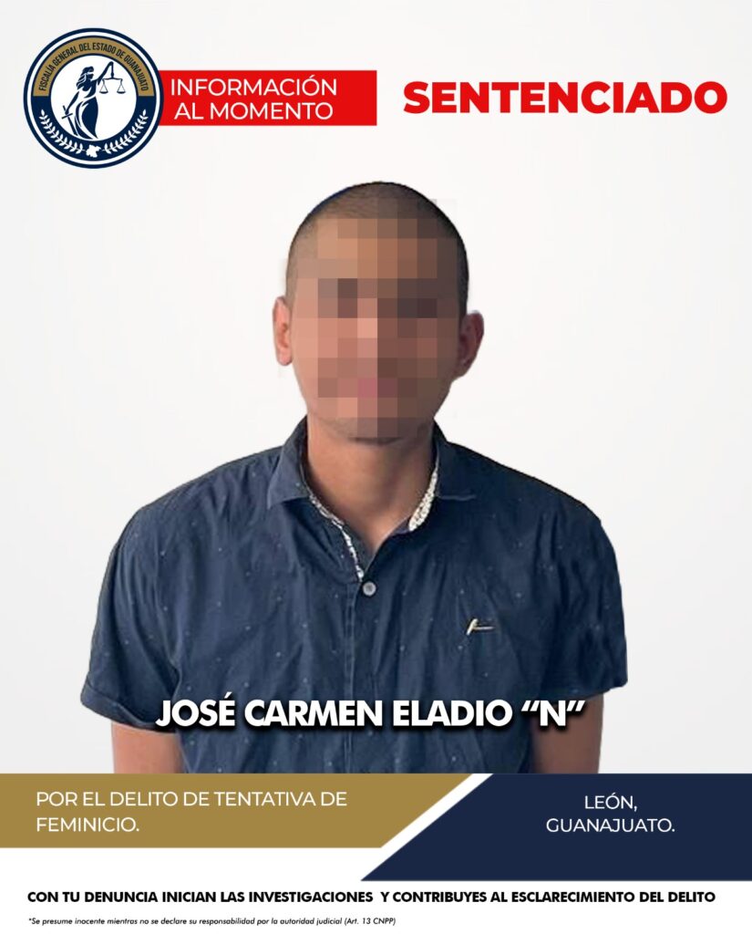 León, Gto. La Fiscalía General del Estado de Guanajuato informa que, a través de la Fiscalía Especializada en Investigación de Delitos Cometidos en Contra de Mujeres por Razones de Género, se logró obtener una sentencia condenatoria ejemplar de 26 años y tres meses de prisión en contra de JOSÉ CARMEN