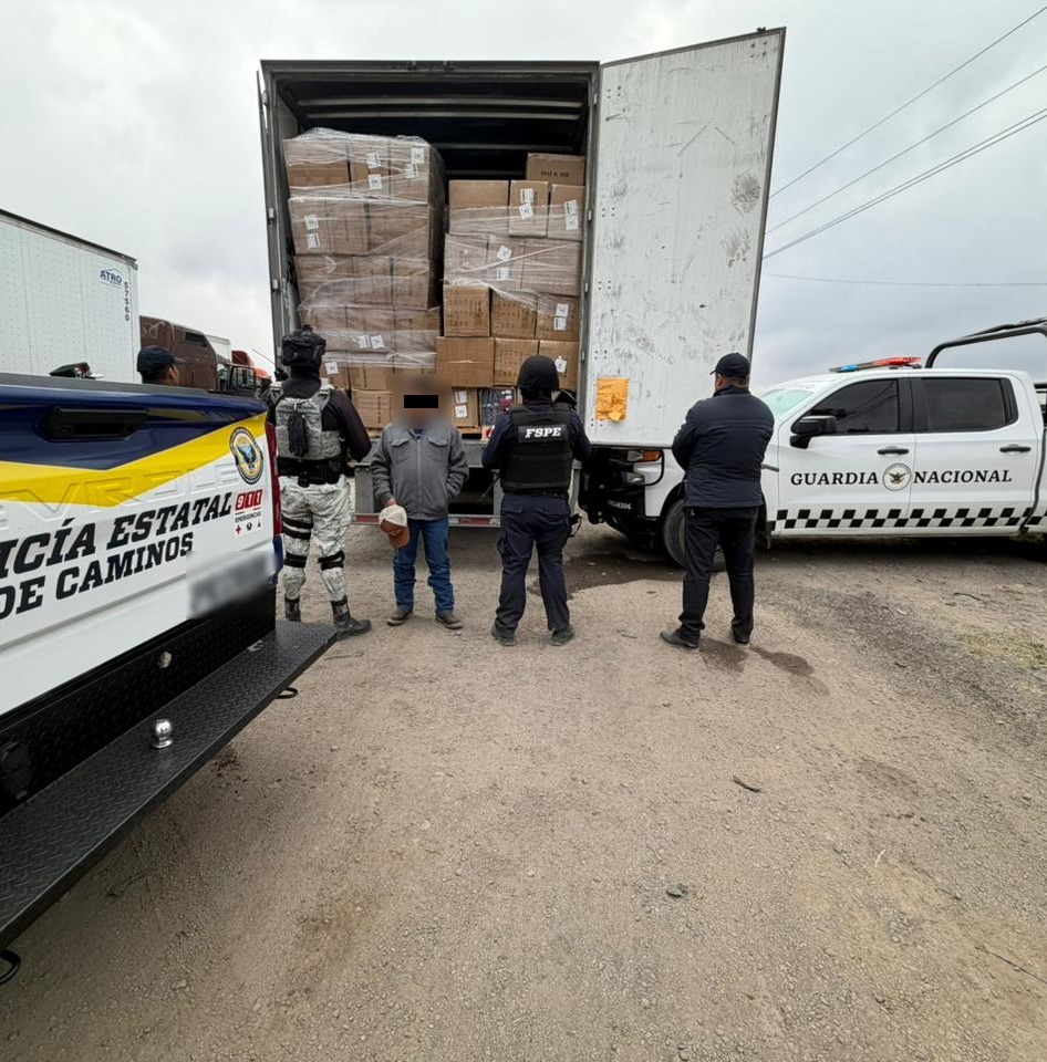 Tras la revisión, las Fuerzas de Seguridad Pública del Estado (FSPE), en coordinación con la Guardia Nacional, detuvieron el vehículo con 20 toneladas de ropa proveniente de China, presuntamente ingresada al país de manera ilegal, sin el pago de impuestos correspondientes y con documentación apócrifa.