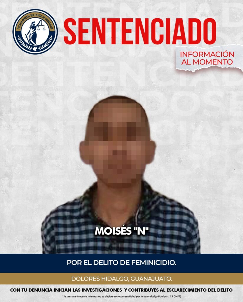 Dolores Hidalgo, Gto. La Fiscalía General del Estado obtuvo una sentencia condenatoria de 110 años de prisión en contra de MOISÉS «N», tras acreditarse plenamente su responsabilidad en el feminicidio de dos hermanas adolescentes en el municipio de Dolores Hidalgo.
