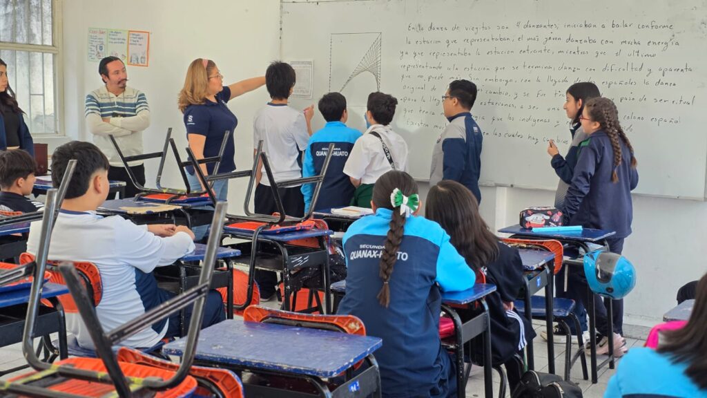 En una primera jornada, las pláticas se llevaron a cabo en la escuela secundaria Quanax-Huato, donde se atendió a grupos de primero, segundo y tercer grado, beneficiando a 130 alumnas y alumnos, quienes participaron en dinámicas orientadas a la convivencia pacífica, la prevención de conductas de riesgo y la promoción de valores.