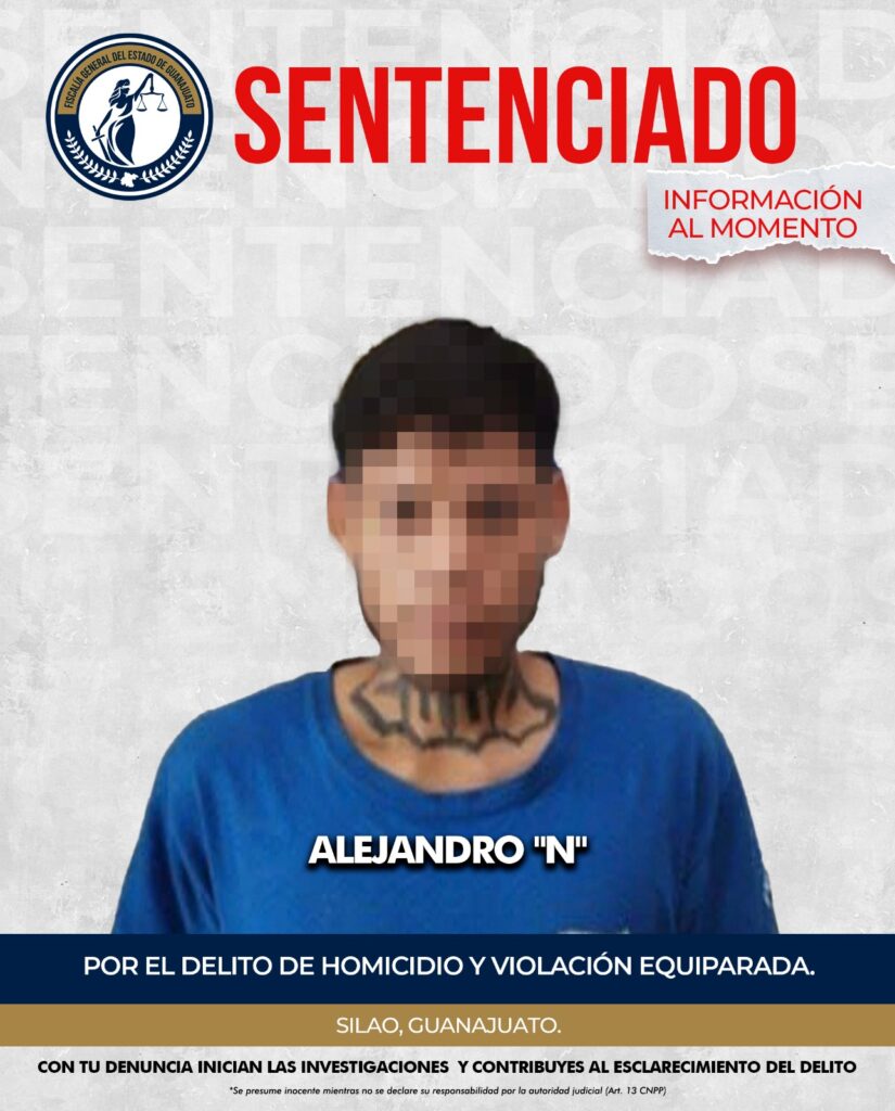 Silao, Gto. La Fiscalía General del Estado de Guanajuato obtuvo una sentencia condenatoria de 24 años y ocho meses de prisión en contra de ALEJANDRO “N” , por su plena responsabilidad en los delitos de