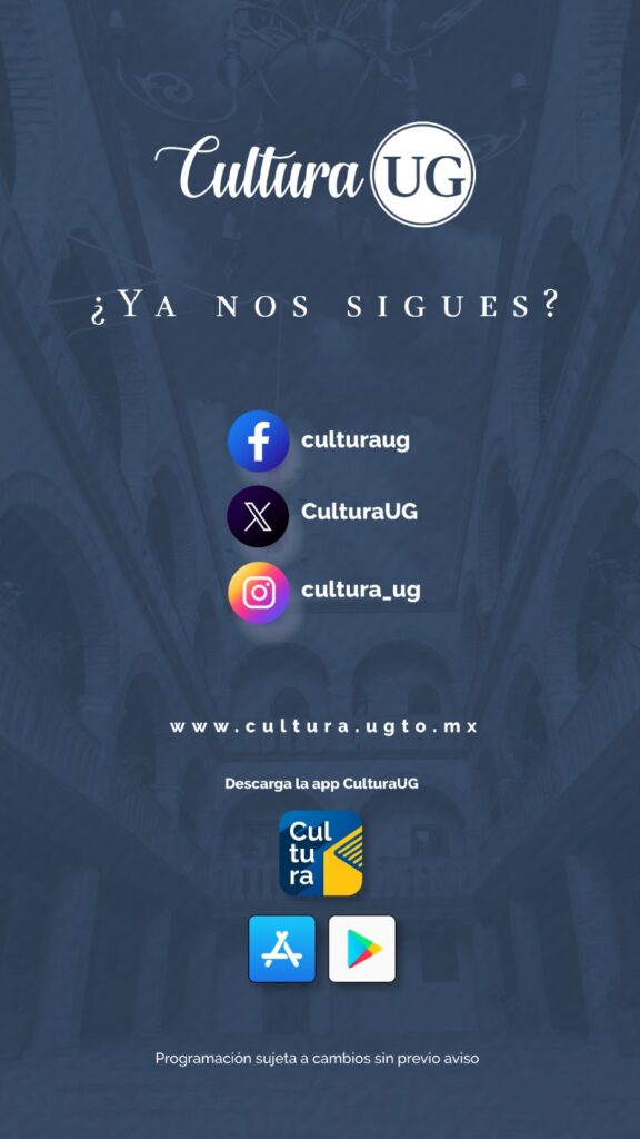 Conoce toda la oferta cultural de la UG en www.cultura.mx y las redes sociales @CulturaUG. Programación sujeta a cambios sin previo aviso.