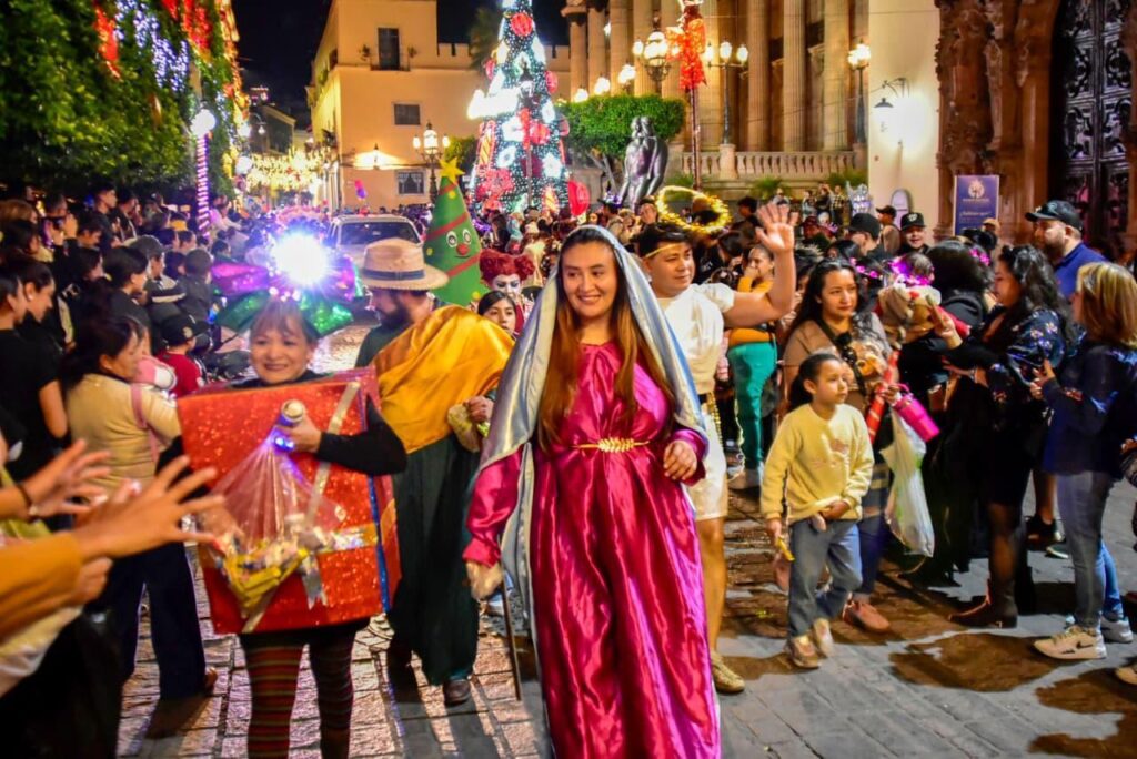 Durante más de dos horas la magia de los Reyes Magos contagió a las más de ocho mil personas que se dieron cita en el centro histórico; los 53 contingentes llegaron a la Alhóndiga de Granaditas, donde los esperaba un público emocionado que se divirtió con concursos, entrega de pelotas y la transmisión en vivo de la cabalgata.