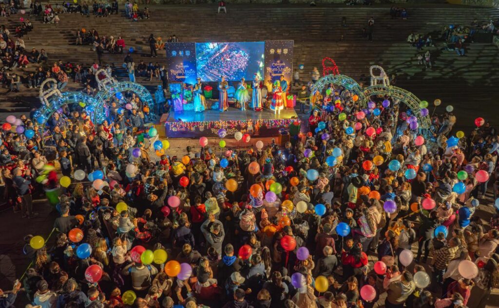 Guanajuato, Gto. La magia se apoderó de Guanajuato capital, con la Cabalgata de Reyes Magos 2026, que recorrió el centro histórico, para el deleite de familias enteras, en una noche de ilusión, tradición y alegría compartida, que se combinó con la emoción por el acceso gratuito a los juegos mecánicos de temporada, ubicados en la Plaza de la Paz y en la Plaza Hidalgo.