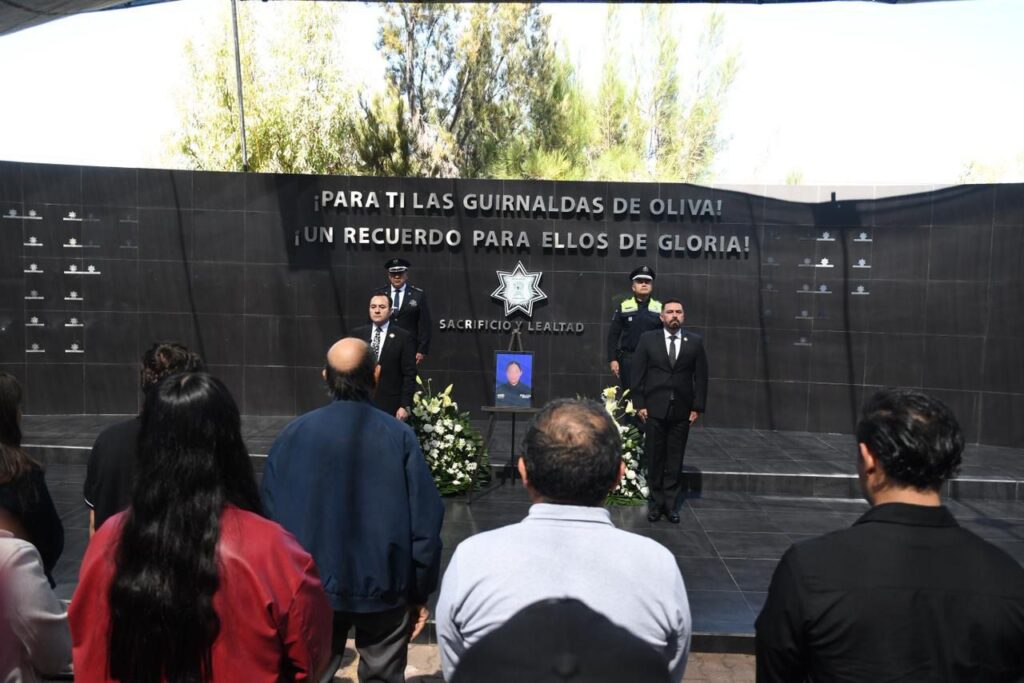 Entre adornos florales y una fotografía de Elena portando su uniforme, se le rindió un homenaje y una guardia de honor presidida por el secretario; el Subsecretario de Seguridad, Hugo César Romero; Víctor Manuel Osornio Álvarez, comisario en jefe de la Policía Estatal de Caminos y José Juan López, Comisario de las FSPE.