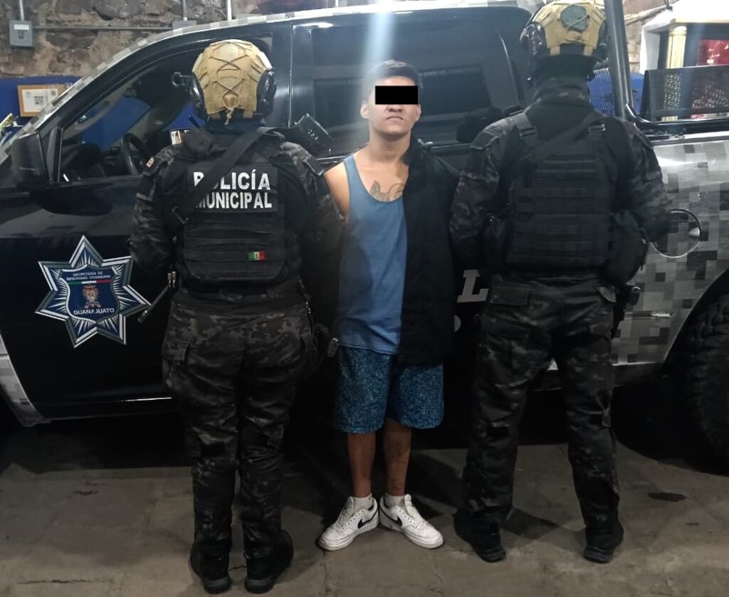 Al notar la presencia policial, uno de los sujetos ingresó a un inmueble, mientras que el otro permaneció en el lugar. Al ser informado de la falta administrativa, el hombre comenzó a comportarse de manera agresiva, por lo que se realizó una inspección preventiva, encontrándole entre sus pertenencias tres envoltorios con presunta droga cristal y una báscula gramera, por lo que fue asegurado y puesto a disposición del Ministerio Público.