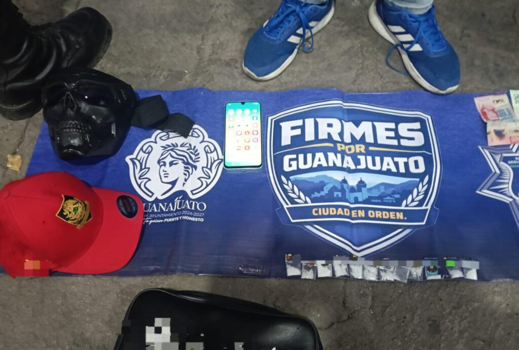 Guanajuato, Gto. Como resultado de los recorridos permanentes de seguridad y la atención directa a los reportes ciudadanos, la Policía Municipal detuvo a un hombre de 26 años de edad en posesión de 12 dosis de presunta droga conocida como cristal.