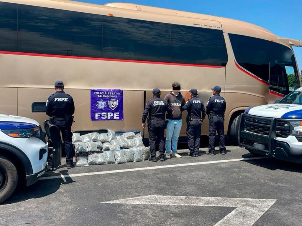 Guanajuato, Gto. Más de 23 mil dosis de una sustancia con características de la marihuana fueron aseguradas por integrantes de la Policía Estatal de Caminos durante la inspección a un autobús de pasajeros en la carretera federal Morelia–Valtierrilla, acción que derivó en la detención de un hombre.