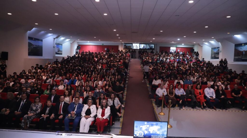 Por ello, sostuvo que, además de celebrar 50 años de historia, este evento permite renovar el compromiso con el futuro, que exige profesionistas preparado(a)s para enfrentar los retos de un entorno global cada vez más complejo, dinámico y competitivo.