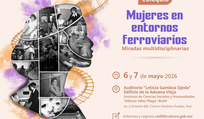 CDMX.- La Secretaría de Cultura del Gobierno de México, a través del Centro Nacional para la Preservación del Patrimonio Cultural Ferrocarrilero (CNPPCF) —mediante el Centro de Documentación e Investigación Ferroviarias (CEDIF)—, así como el Instituto de Ciencias Sociales y Humanidades “Alfonso Vélez Pliego” (ICSyH-BUAP) —a través del Seminario Permanente de Historia, Tecnología y Cultura Industrial—, el Colegio de San Luis (COLSAN) y la Red Interdisciplinaria de Mujeres del Ferrocarril (RIMFE) invitan al coloquio “Mujeres en entornos ferroviarios. Miradas multidisciplinarias”, el cual se llevará a cabo del 6 al 7 de mayo en la ciudad de Puebla.