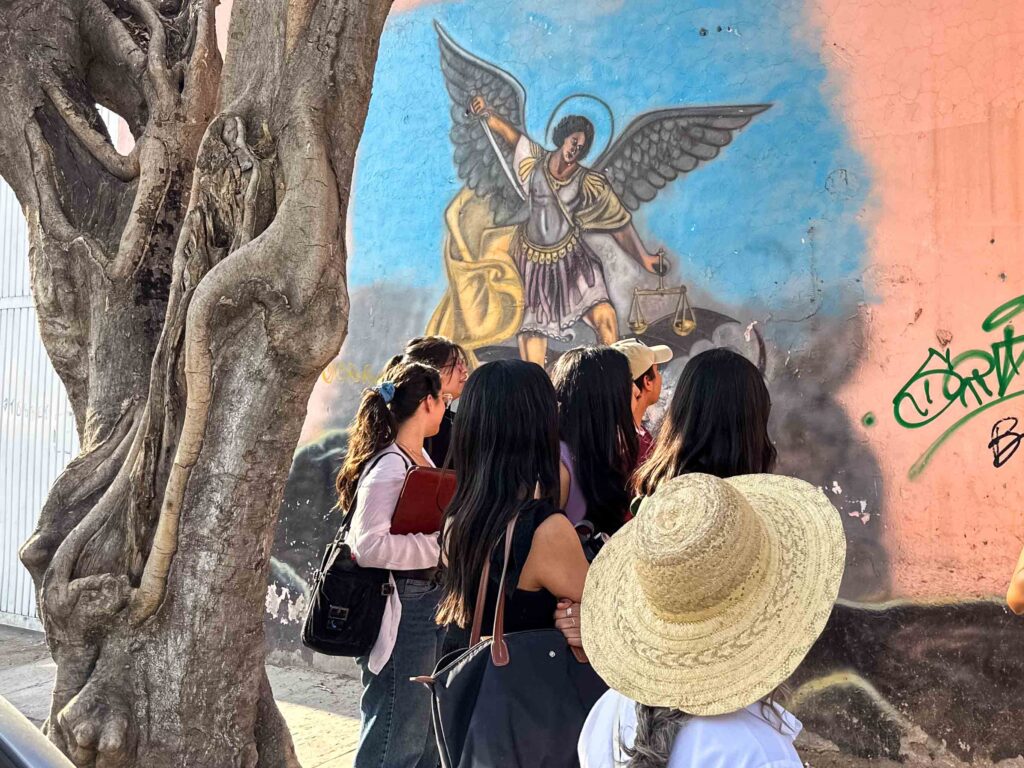 El recorrido contó también con el apoyo de la Mtra. María de la Luz Rivera Navas, vecina y memoria viva del Barrio de San Juan de Dios, quien resaltó el valor arquitectónico de este espacio en el que se entrelazan la infraestructura moderna y el legado colonial. Asimismo, compartió cómo el barrio se vincula con distintas instituciones sociales y cómo su transformación permite a visitantes disfrutar de una ruta gastronómica diversa y accesible.