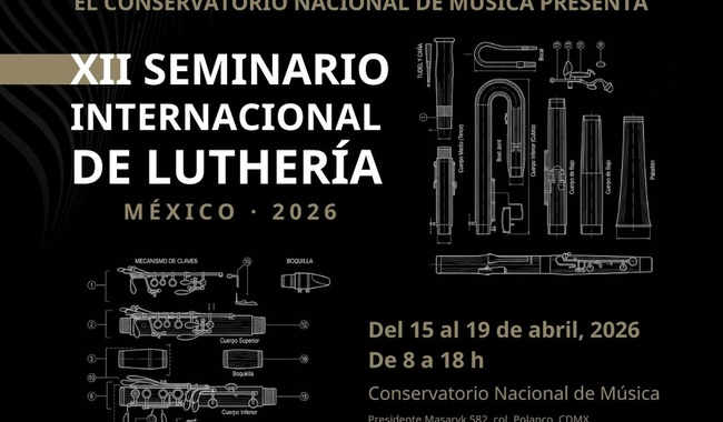 CDMX.- El Conservatorio Nacional de Música (CNM), perteneciente a la Subdirección General de Educación e Investigación Artísticas (SGEIA) del Instituto Nacional de Bellas Artes y Literatura (INBAL), será sede del XII Seminario Internacional de Laudería, que se llevará a cabo del 15 al 19 de abril, de 8 a 18 horas, como parte de las acciones de actualización y profesionalización en el ámbito de la práctica musical.