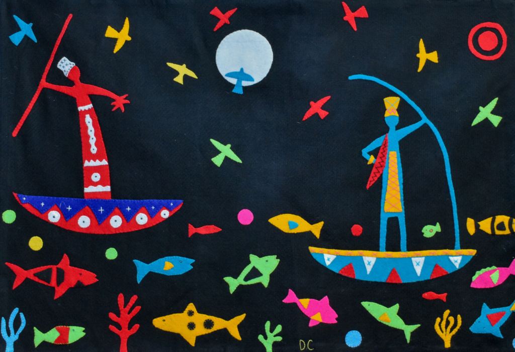 Realizadas entre 2003 y 2007, las 27 molas que presentará Correa en Guanajuato se nutren de la imaginería, relatos y figuras de pueblos afrodescendientes, con coloridas composiciones que remiten a escenas de cacería y pesca, labores de la tierra, fiestas y rituales. Junto con ellas, se exhiben varios bocetos preparatorios.