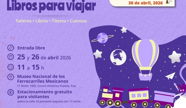 Las actividades del festival “Libros para viajar” se llevarán a cabo de manera gratuita en el MNFM, ubicado en la calle 11 Norte 1005, Centro Histórico, Puebla. La programación puede consultarse a través de la página https://museoferrocarrilesmexicanos.cultura.gob.mx/.